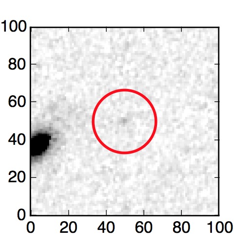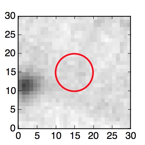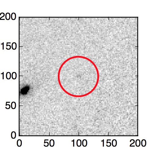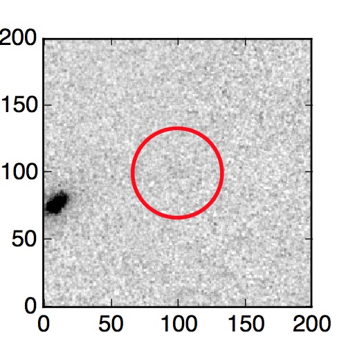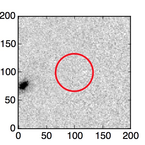 The red circle in the various panels is 1" in radius. The images are 6"x6".