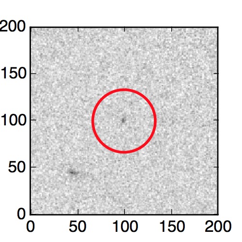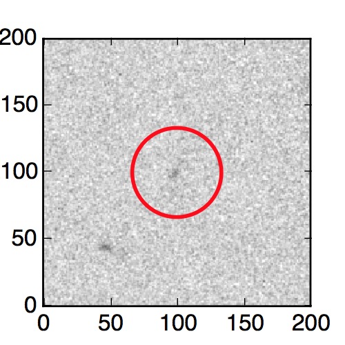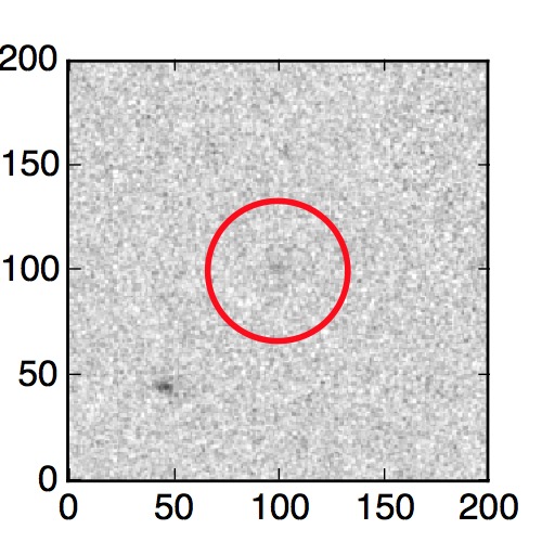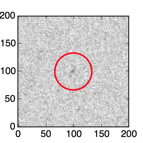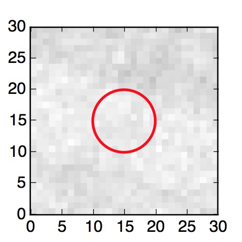 The red circle in the various panels is 1" in radius. The images are 6"x6".