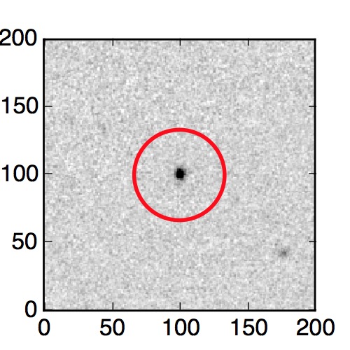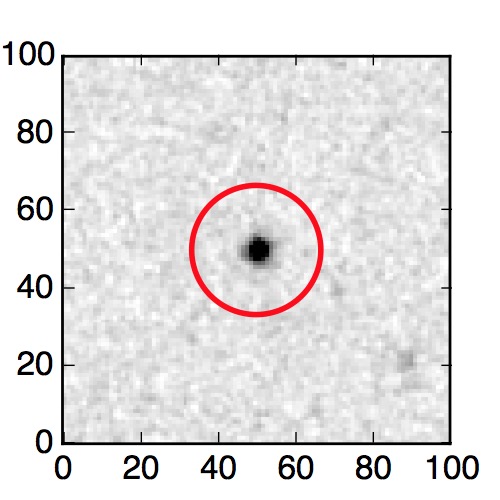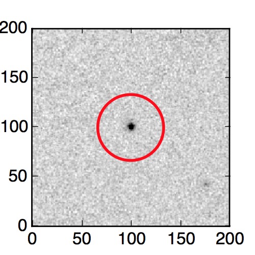 The red circle in the various panels is 1" in radius. The images are 6"x6".