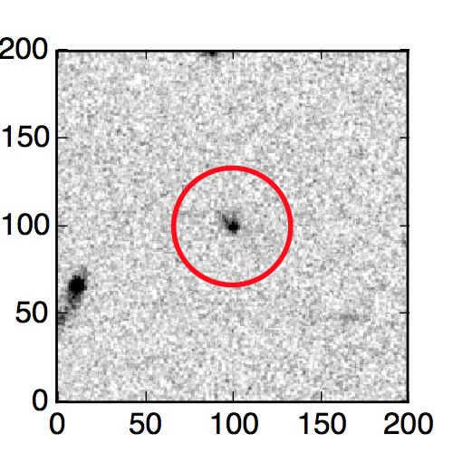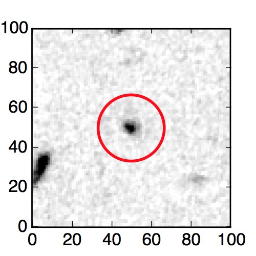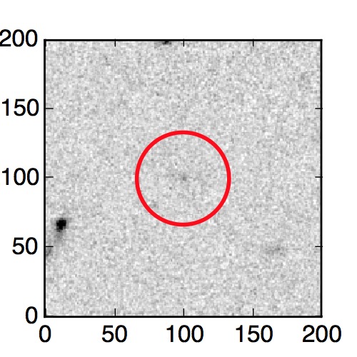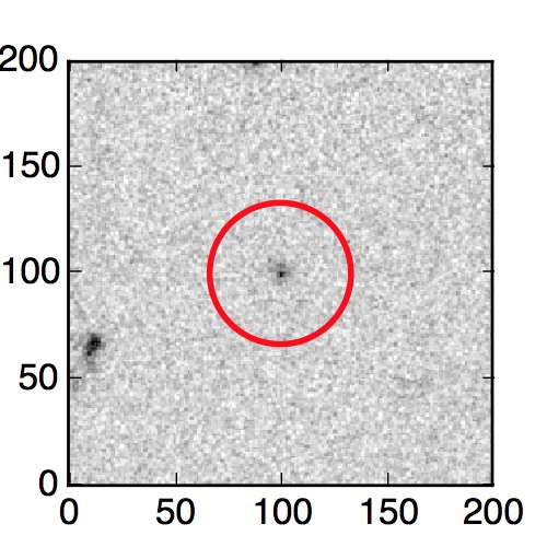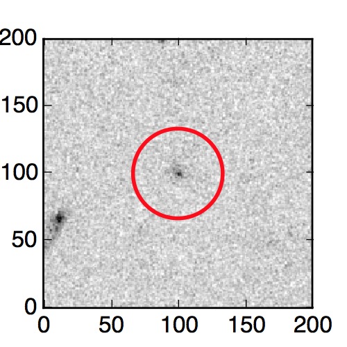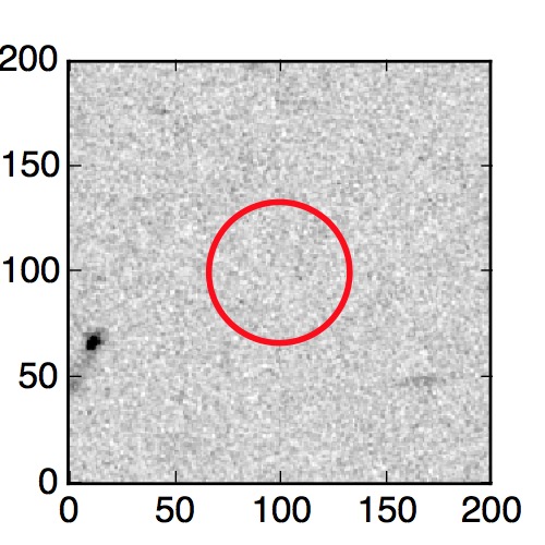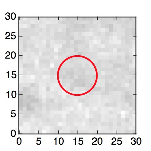 The red circle in the various panels is 1" in radius. The images are 6"x6".