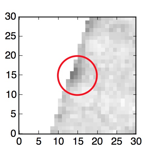The red circle in the various panels is 1" in radius. The images are 6"x6".