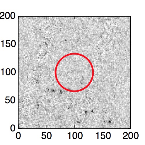 The red circle in the various panels is 1" in radius. The images are 6"x6".