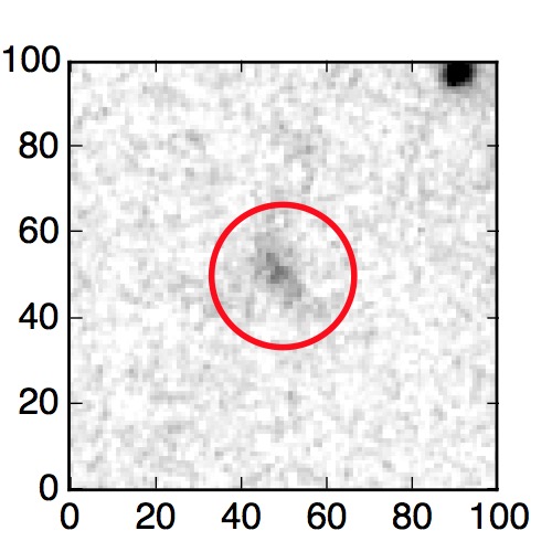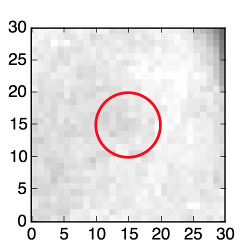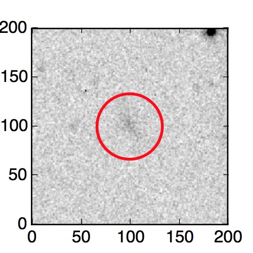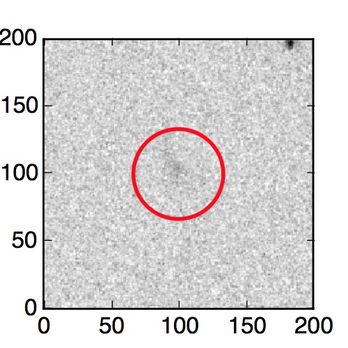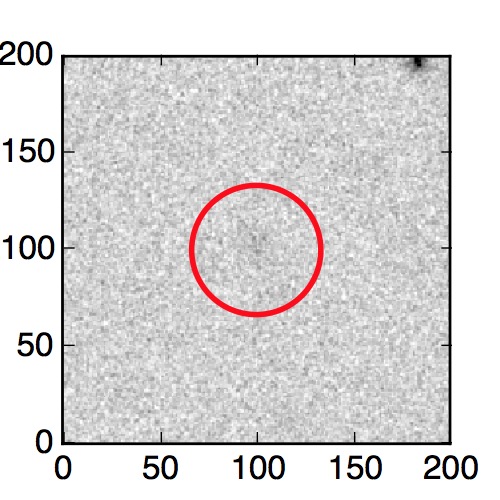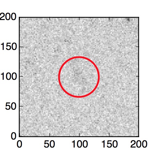 The red circle in the various panels is 1" in radius. The images are 6"x6".