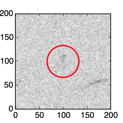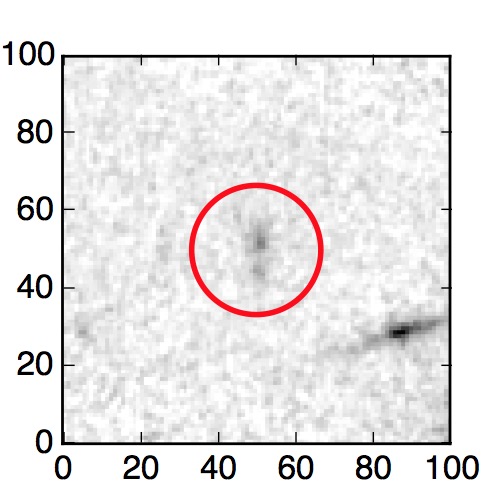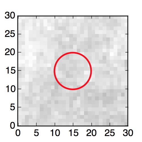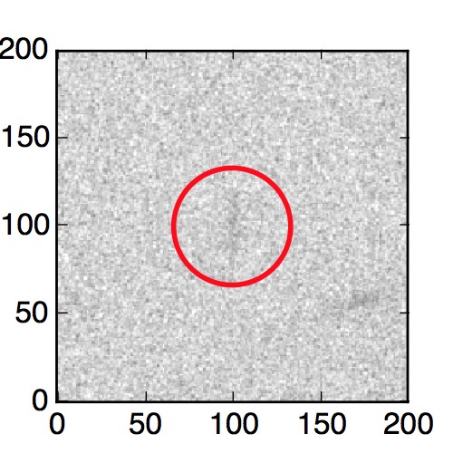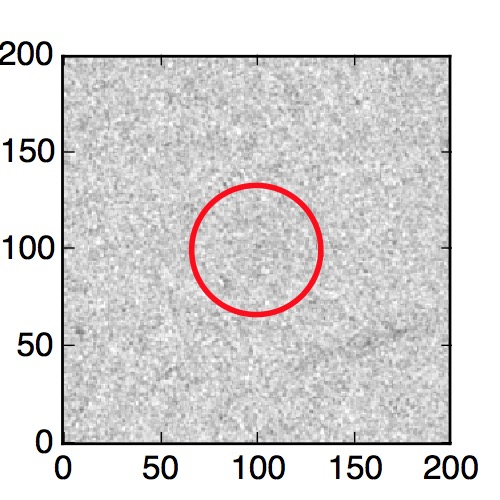 The red circle in the various panels is 1" in radius. The images are 6"x6".