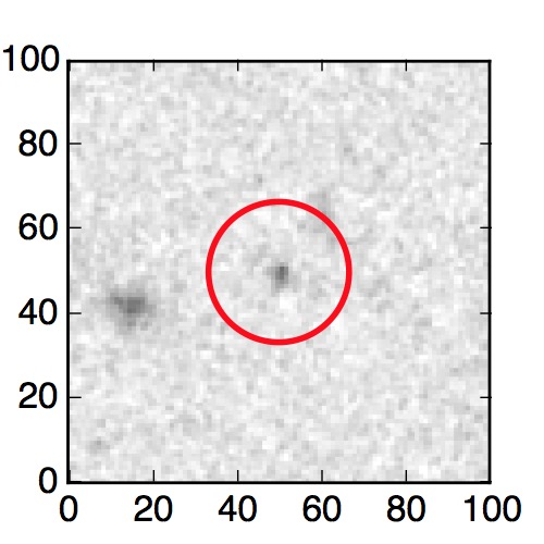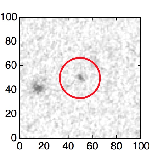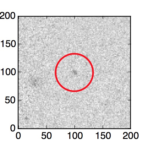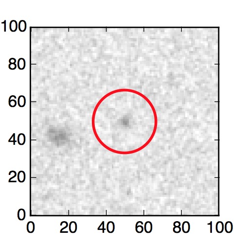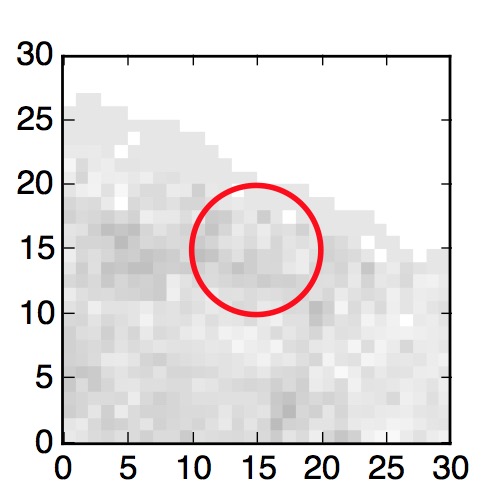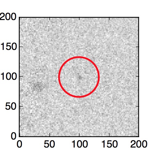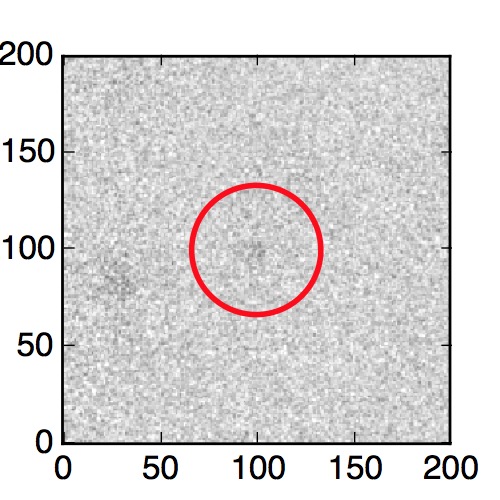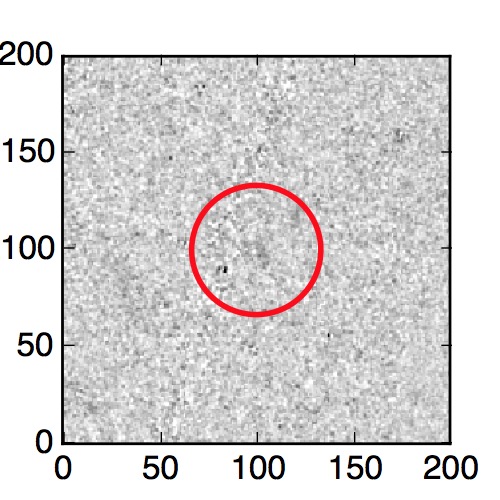 The red circle in the various panels is 1" in radius. The images are 6"x6".
