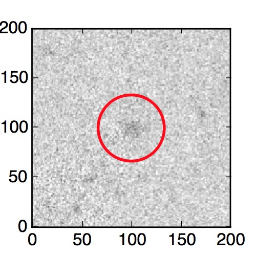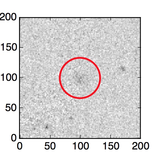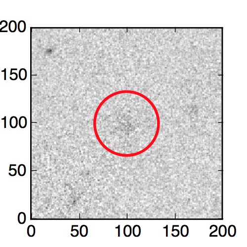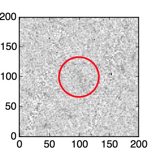The red circle in the various panels is 1" in radius. The images are 6"x6".