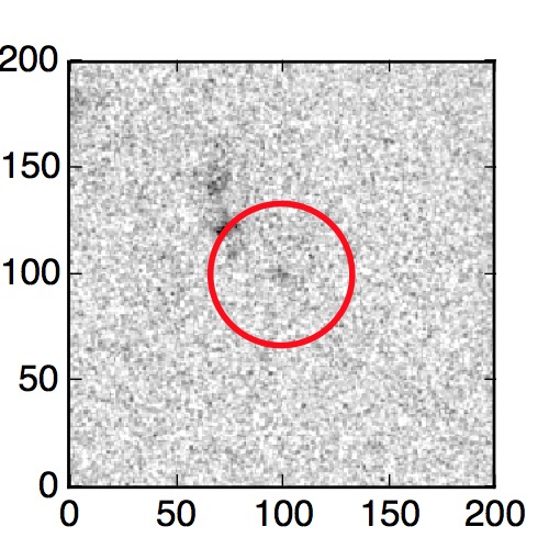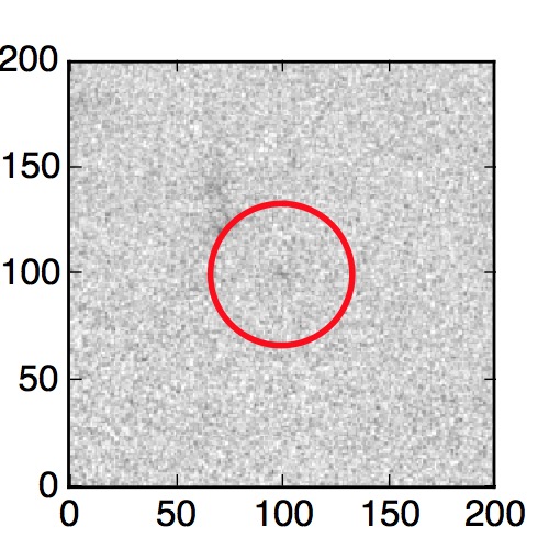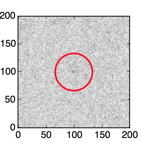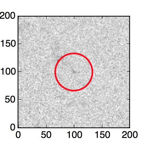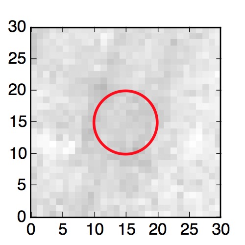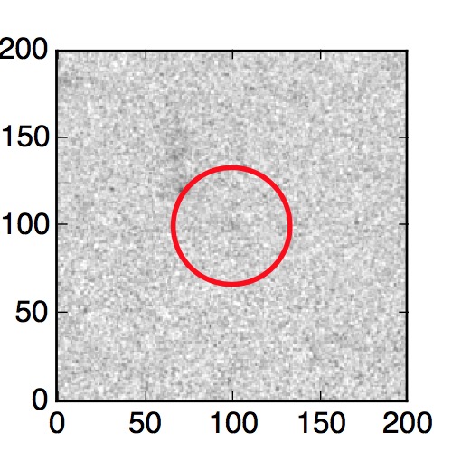 The red circle in the various panels is 1" in radius. The images are 6"x6".