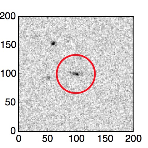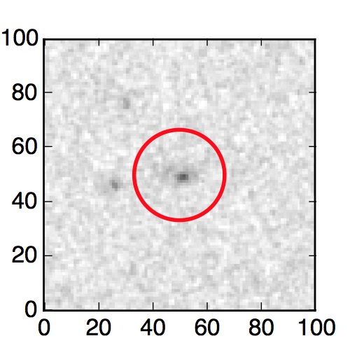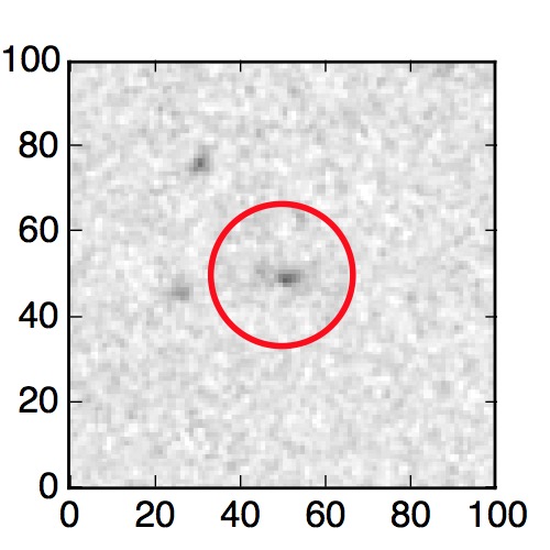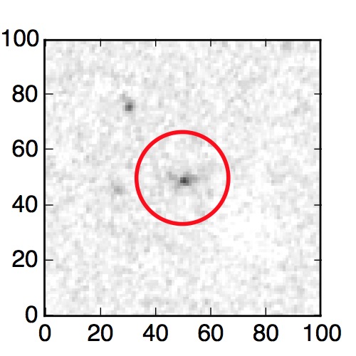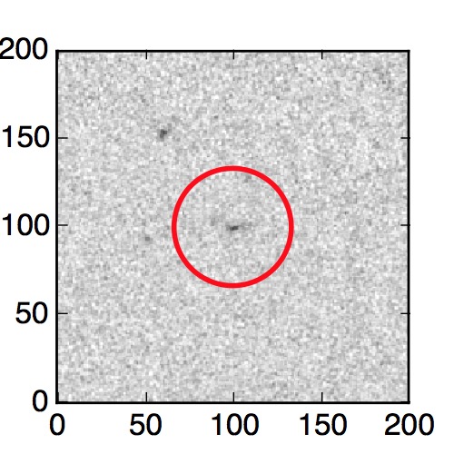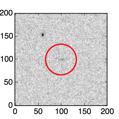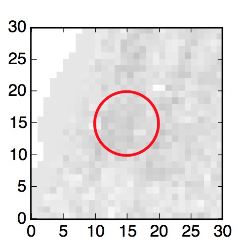 The red circle in the various panels is 1" in radius. The images are 6"x6".