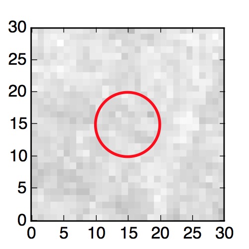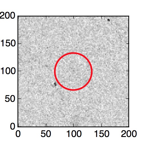 The red circle in the various panels is 1" in radius. The images are 6"x6".