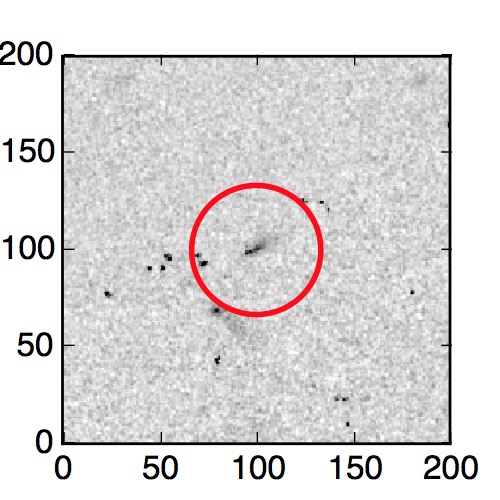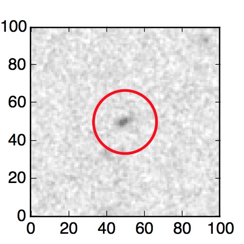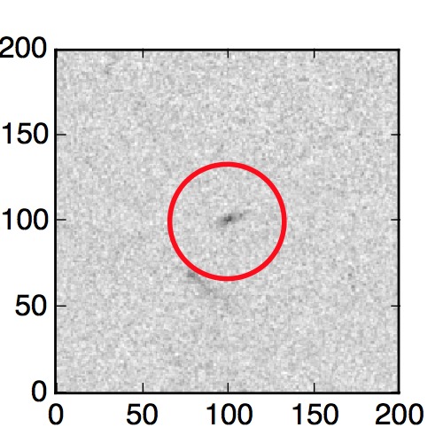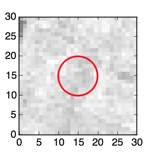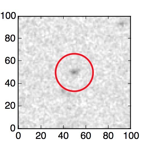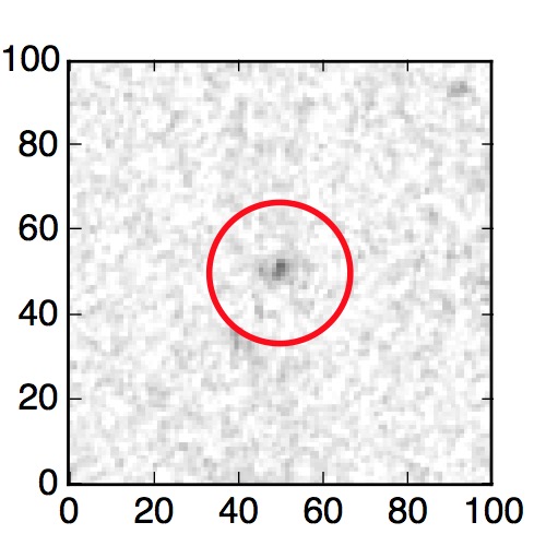 The red circle in the various panels is 1" in radius. The images are 6"x6".