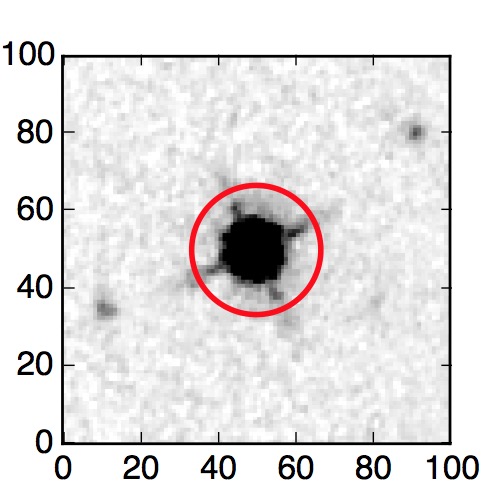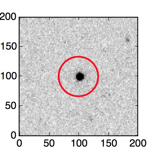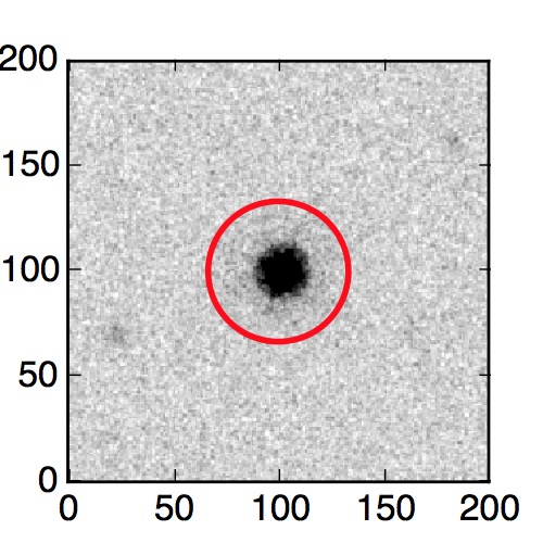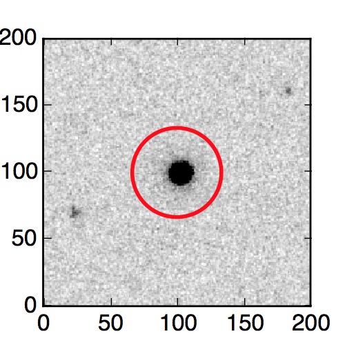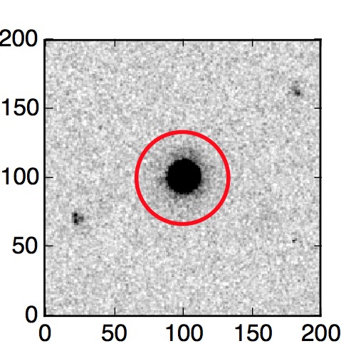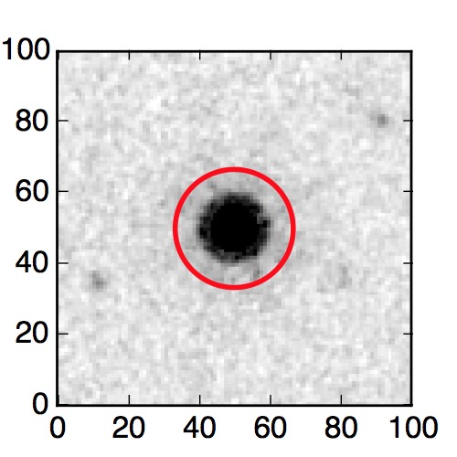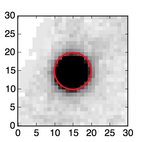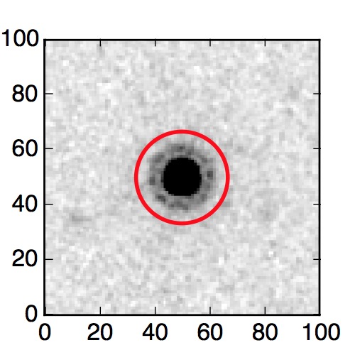 The red circle in the various panels is 1" in radius. The images are 6"x6".