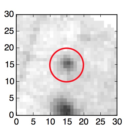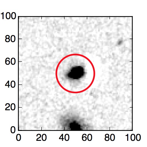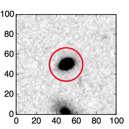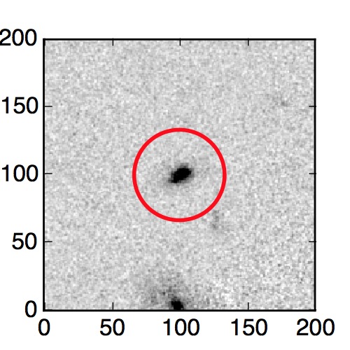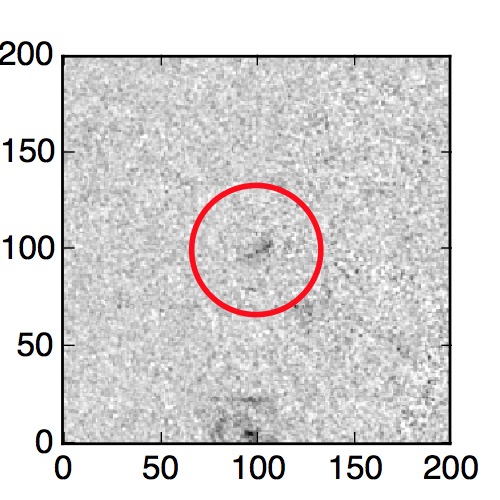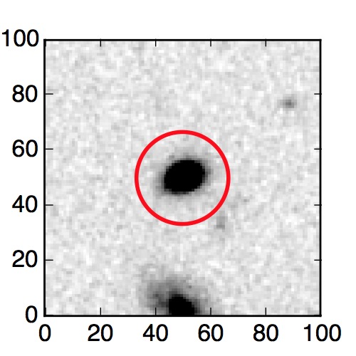 The red circle in the various panels is 1" in radius. The images are 6"x6".