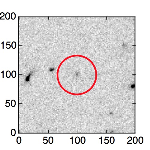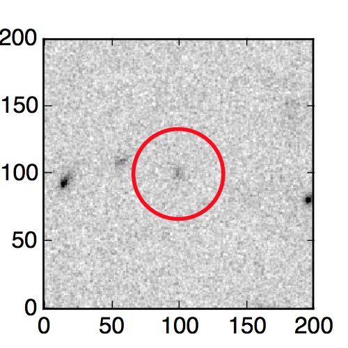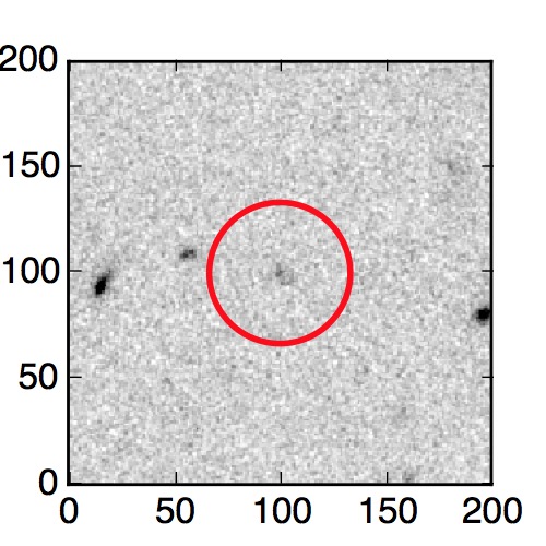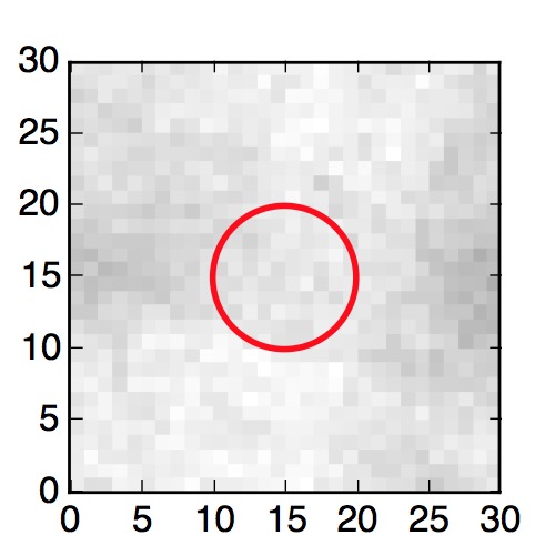 The red circle in the various panels is 1" in radius. The images are 6"x6".