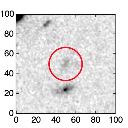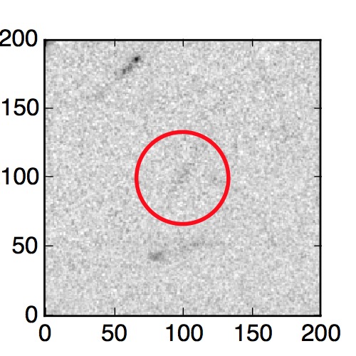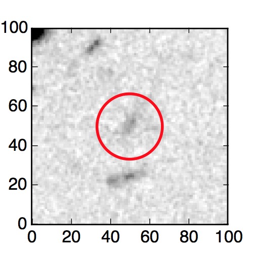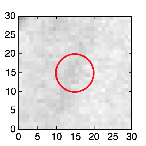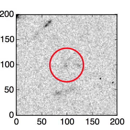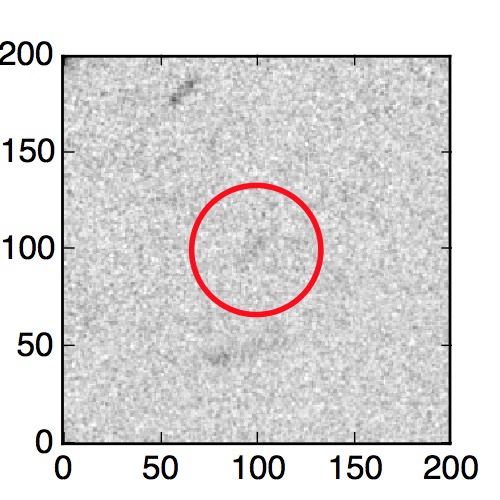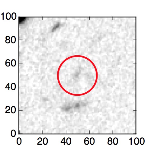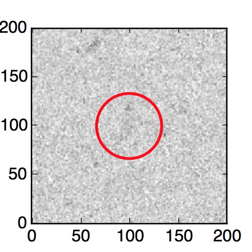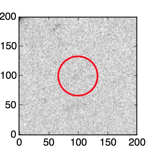 The red circle in the various panels is 1" in radius. The images are 6"x6".