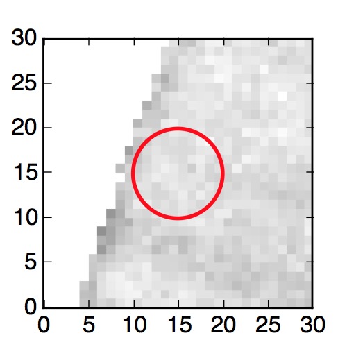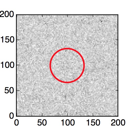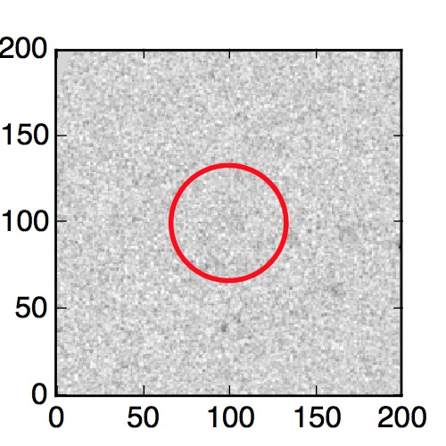 The red circle in the various panels is 1" in radius. The images are 6"x6".