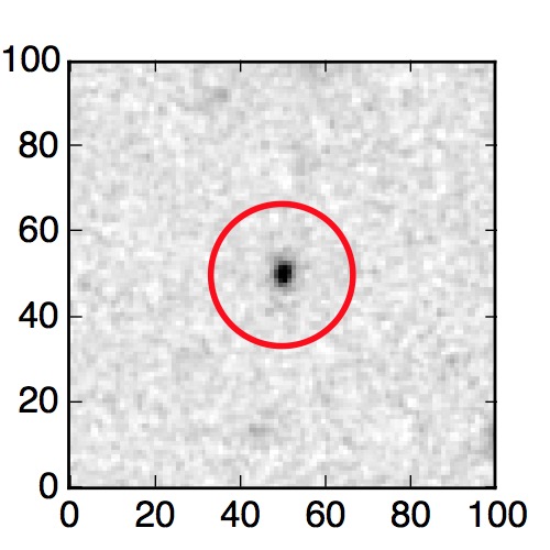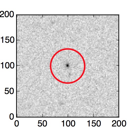 The red circle in the various panels is 1" in radius. The images are 6"x6".