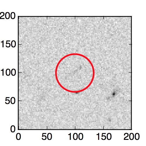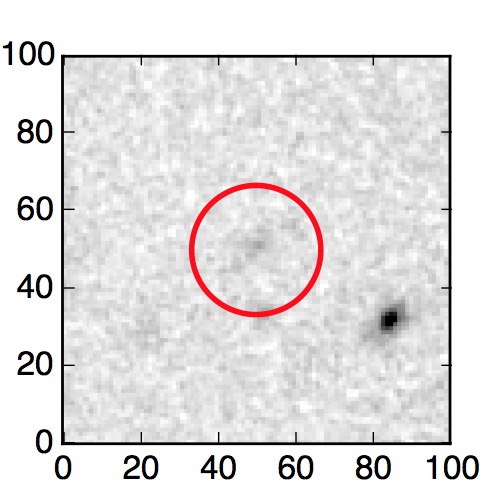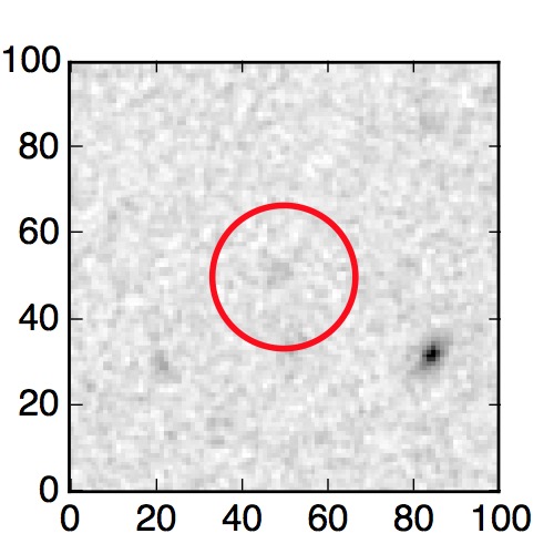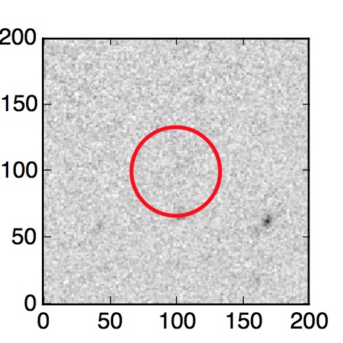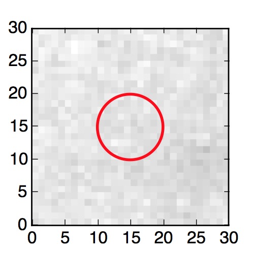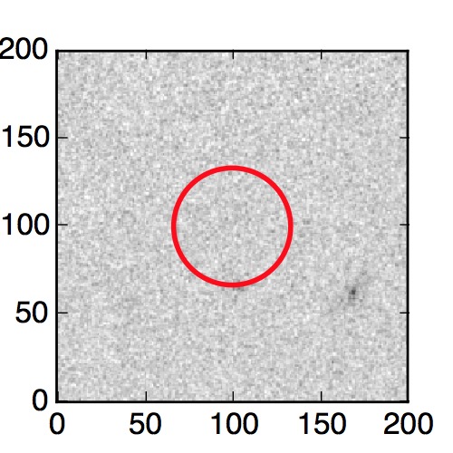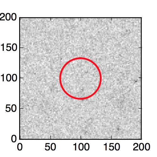 The red circle in the various panels is 1" in radius. The images are 6"x6".