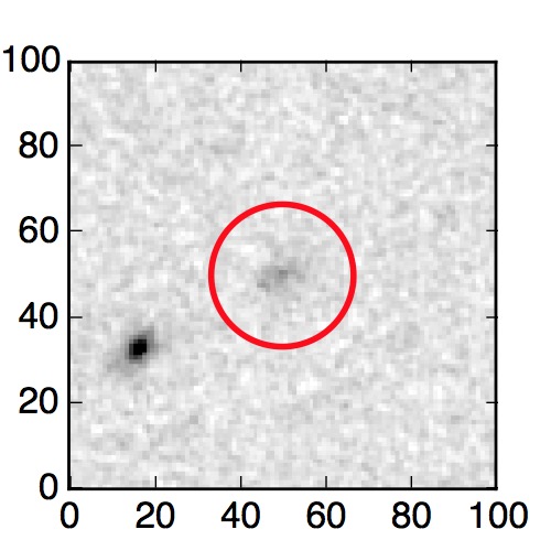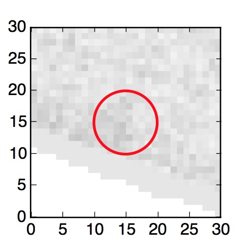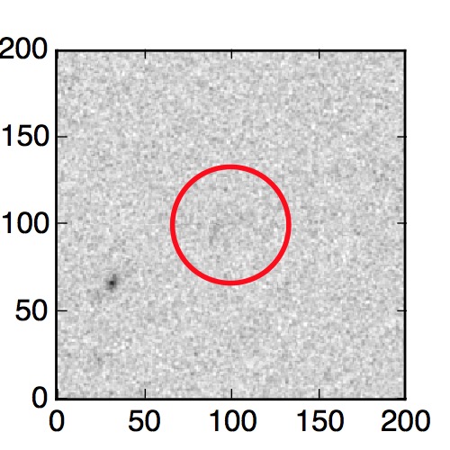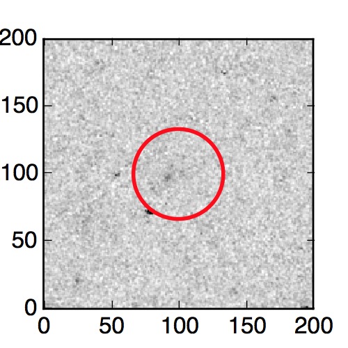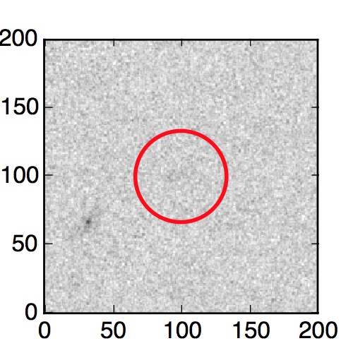 The red circle in the various panels is 1" in radius. The images are 6"x6".