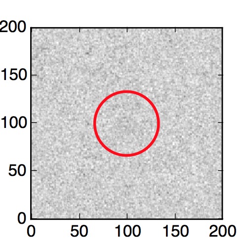 The red circle in the various panels is 1" in radius. The images are 6"x6".