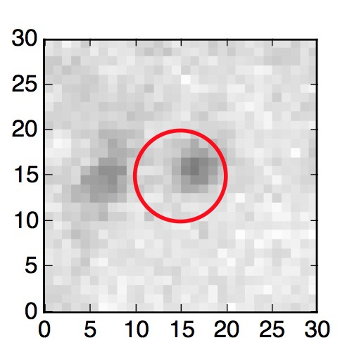 The red circle in the various panels is 1" in radius. The images are 6"x6".