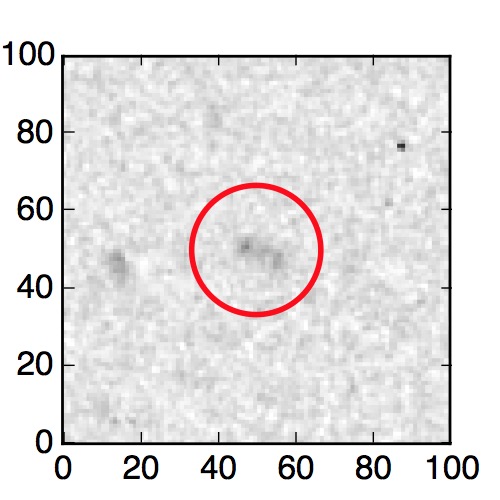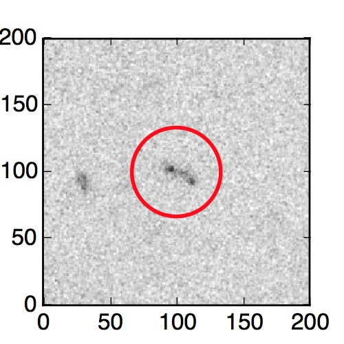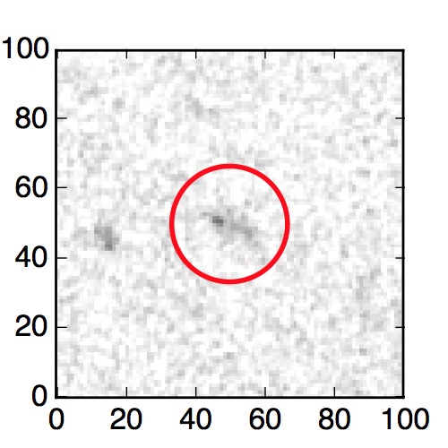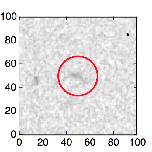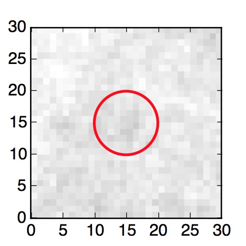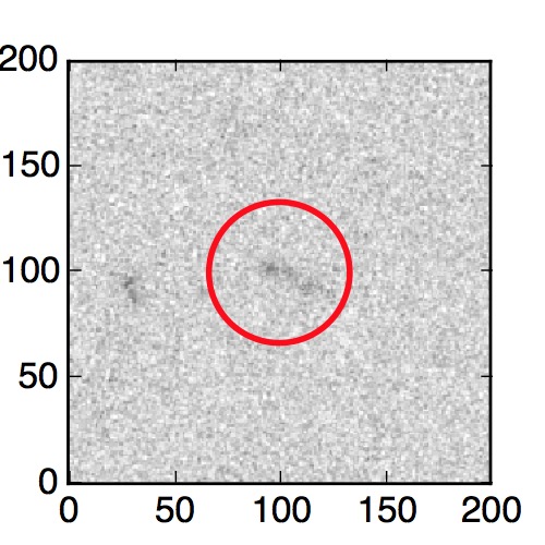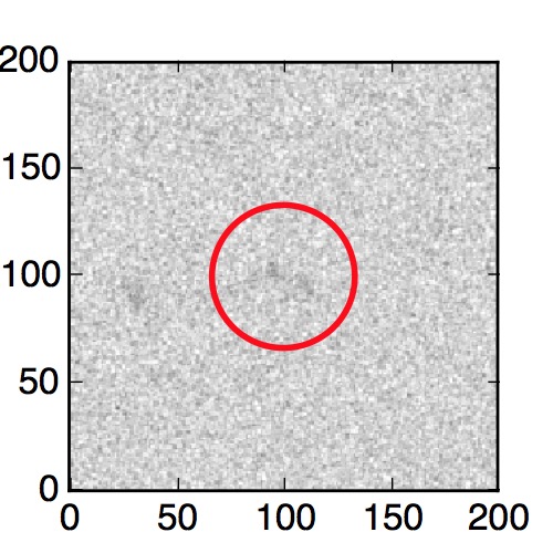 The red circle in the various panels is 1" in radius. The images are 6"x6".