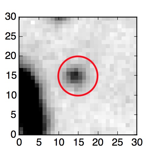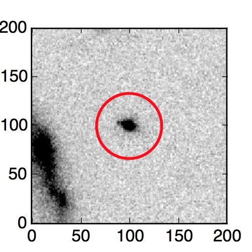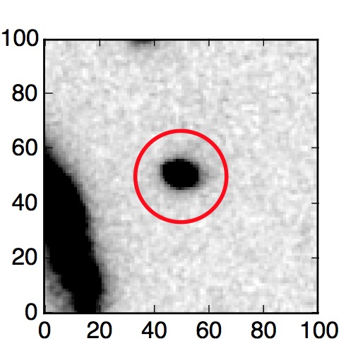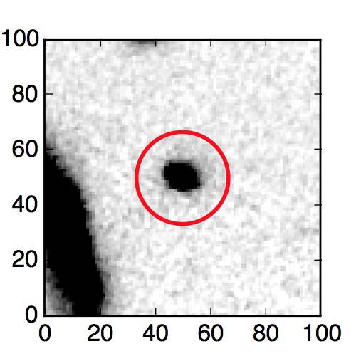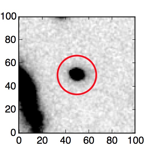 The red circle in the various panels is 1" in radius. The images are 6"x6".