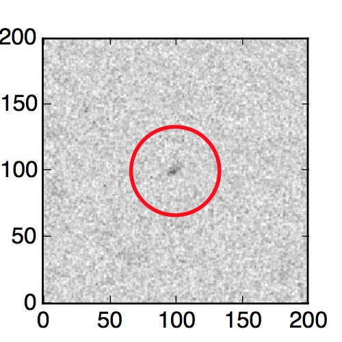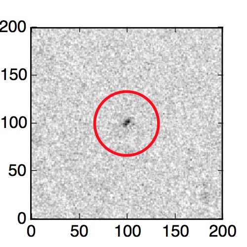 The red circle in the various panels is 1" in radius. The images are 6"x6".