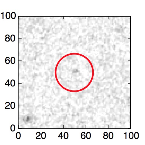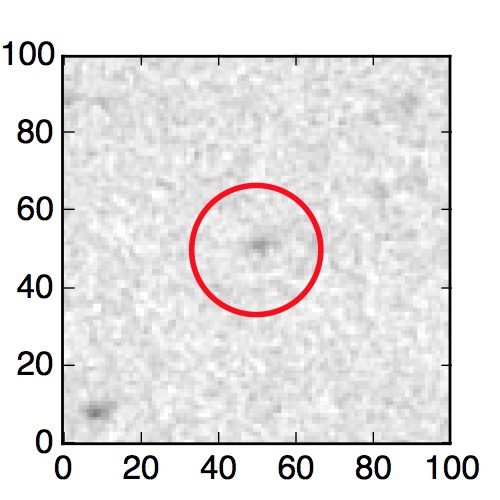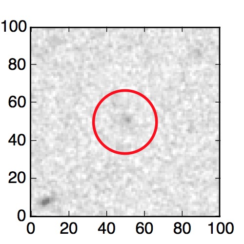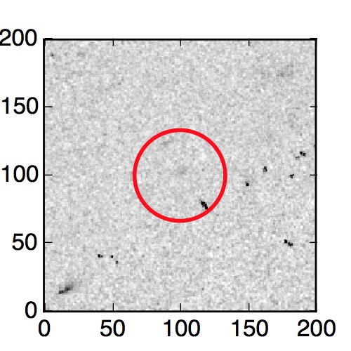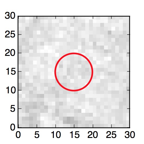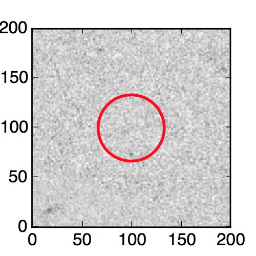 The red circle in the various panels is 1" in radius. The images are 6"x6".
