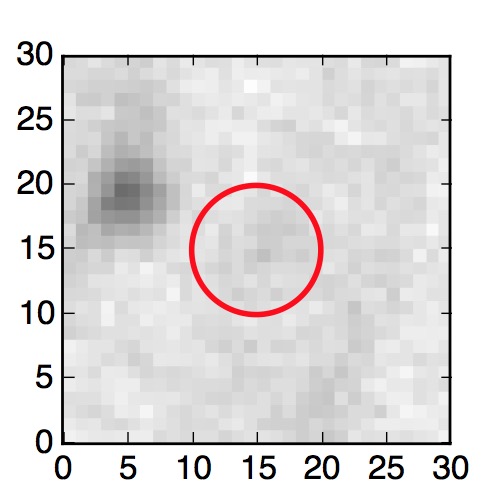 The red circle in the various panels is 1" in radius. The images are 6"x6".