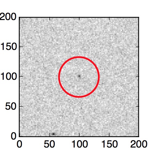 The red circle in the various panels is 1" in radius. The images are 6"x6".