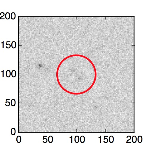 The red circle in the various panels is 1" in radius. The images are 6"x6".