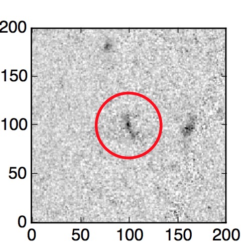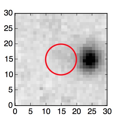 The red circle in the various panels is 1" in radius. The images are 6"x6".