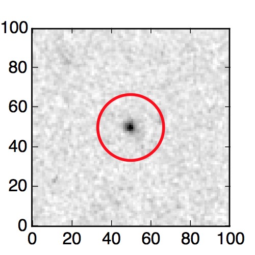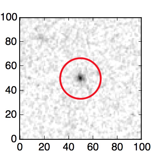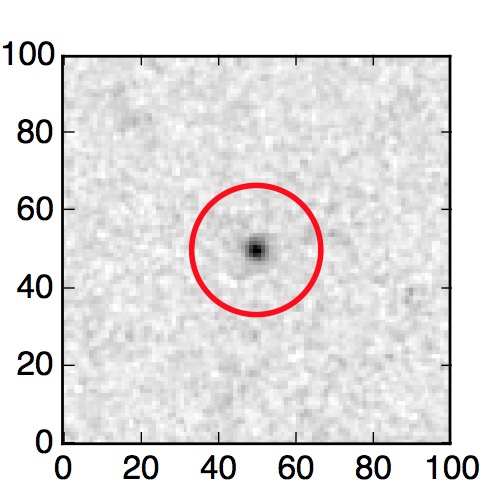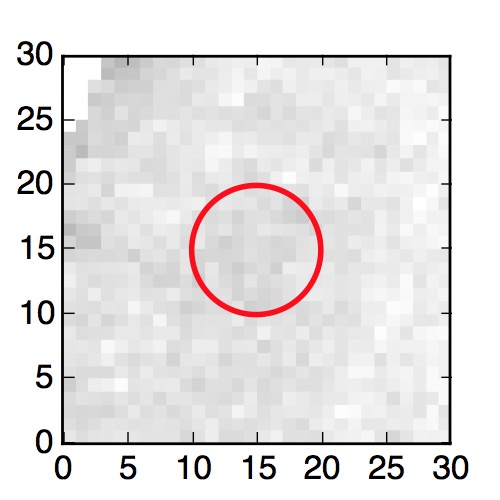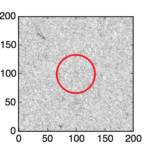 The red circle in the various panels is 1" in radius. The images are 6"x6".