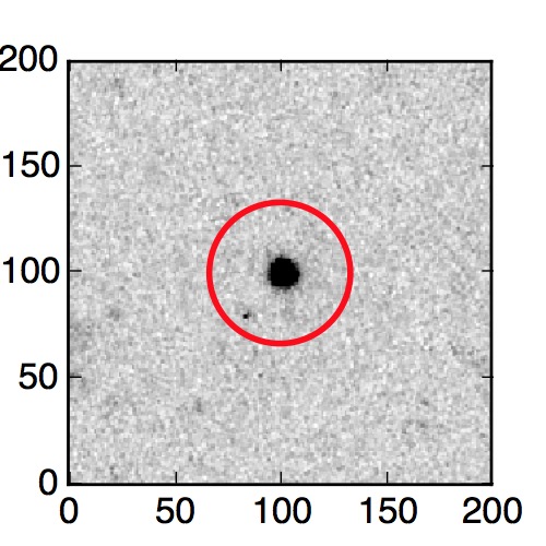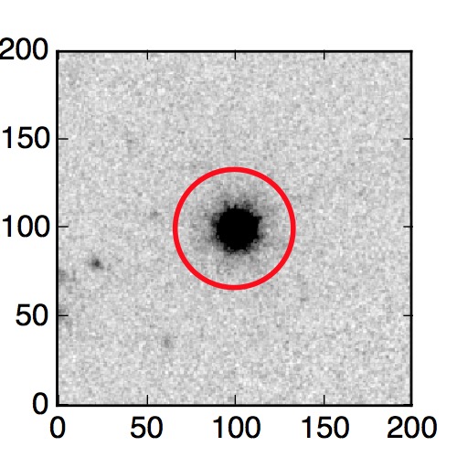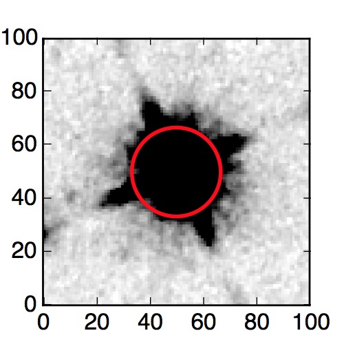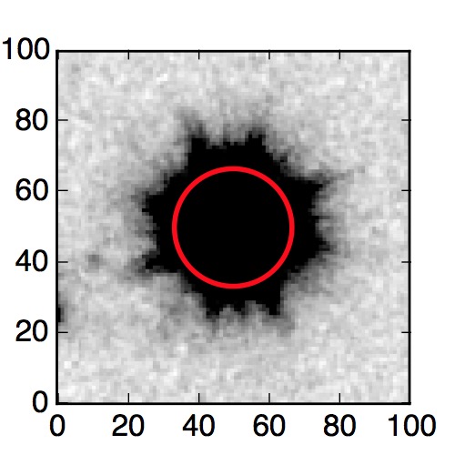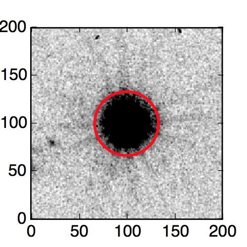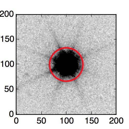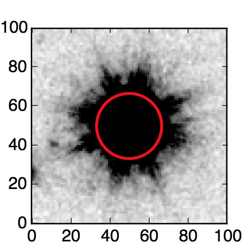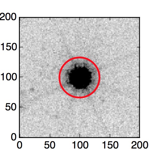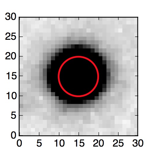 The red circle in the various panels is 1" in radius. The images are 6"x6".