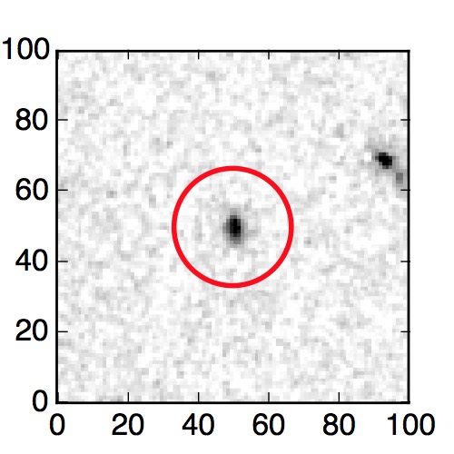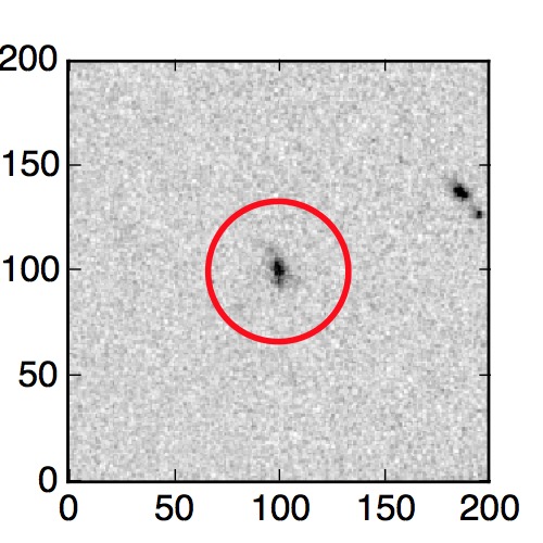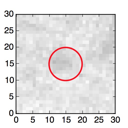 The red circle in the various panels is 1" in radius. The images are 6"x6".