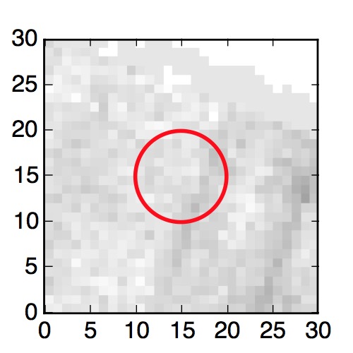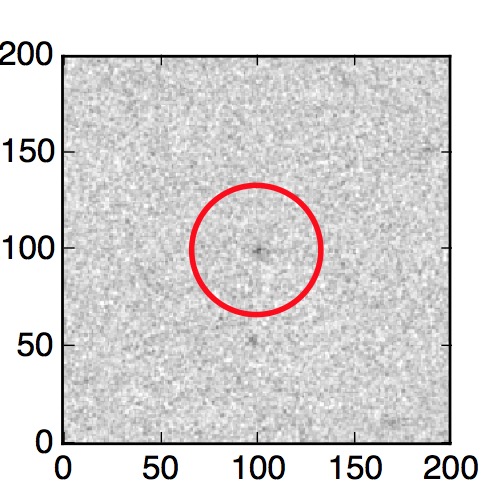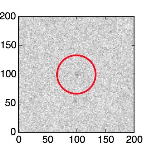 The red circle in the various panels is 1" in radius. The images are 6"x6".