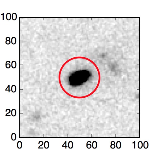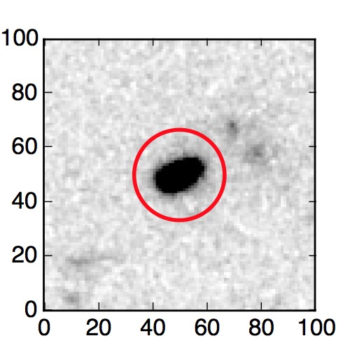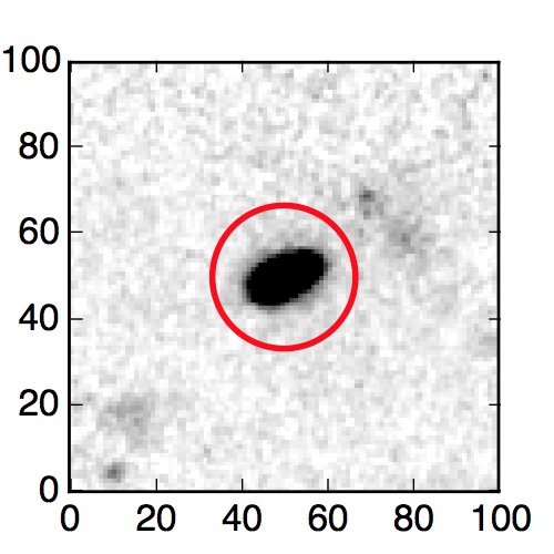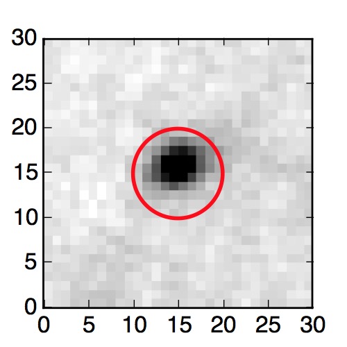 The red circle in the various panels is 1" in radius. The images are 6"x6".