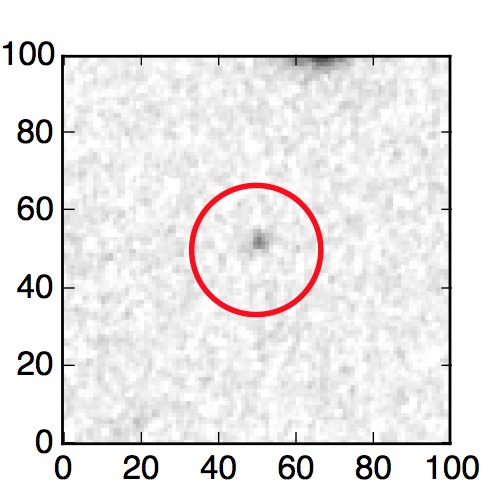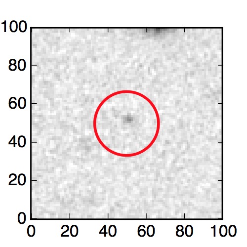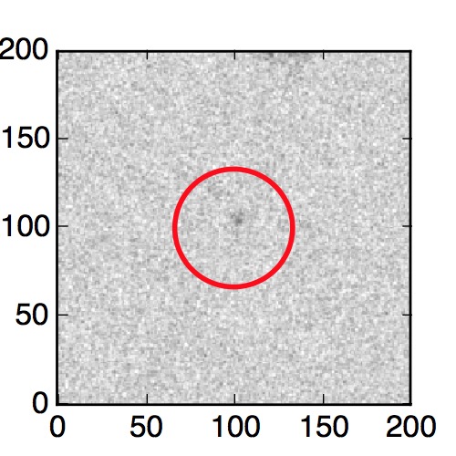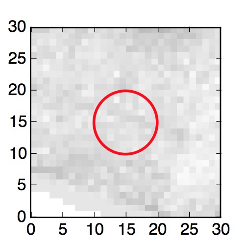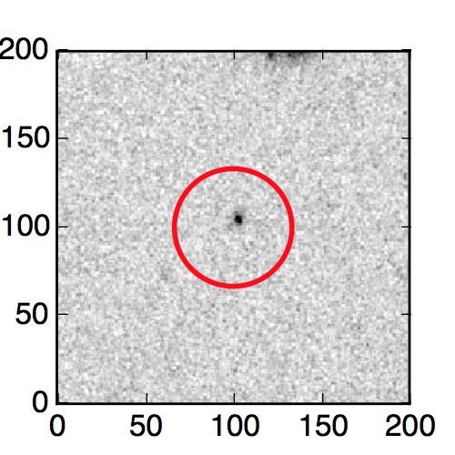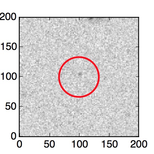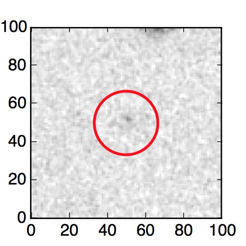The red circle in the various panels is 1" in radius. The images are 6"x6".