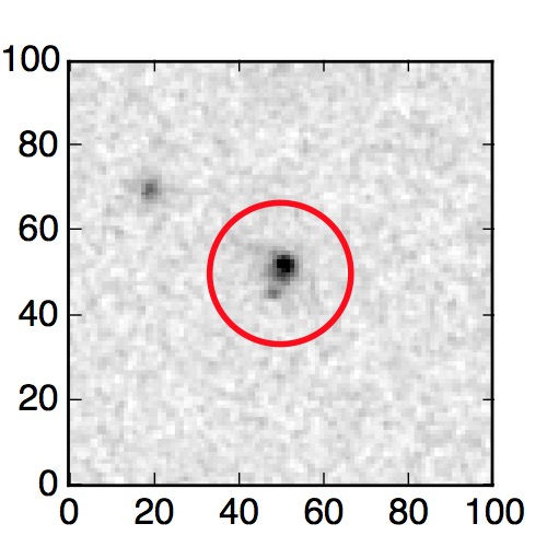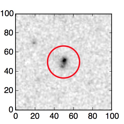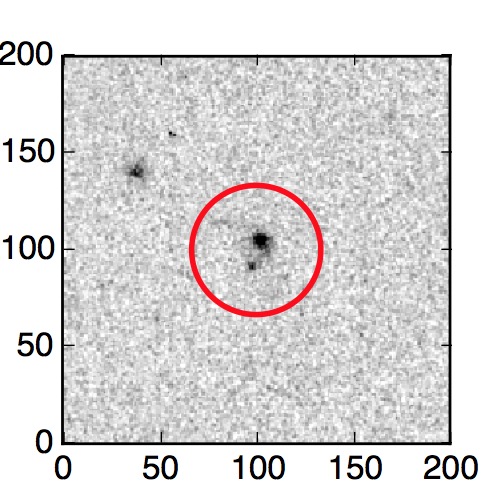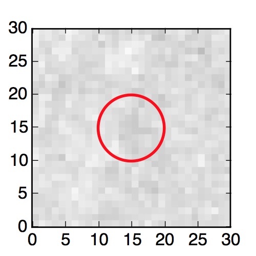 The red circle in the various panels is 1" in radius. The images are 6"x6".