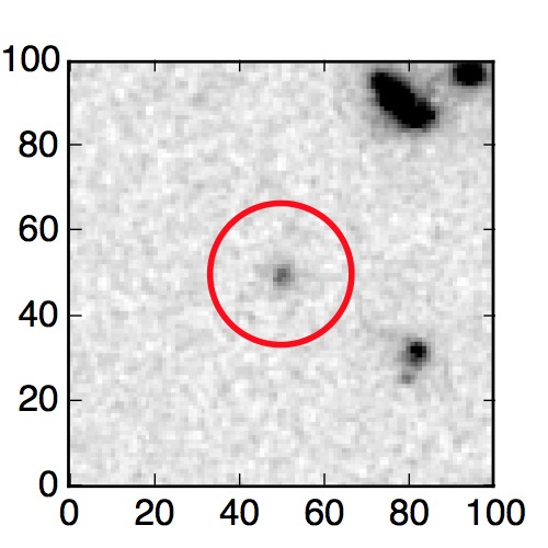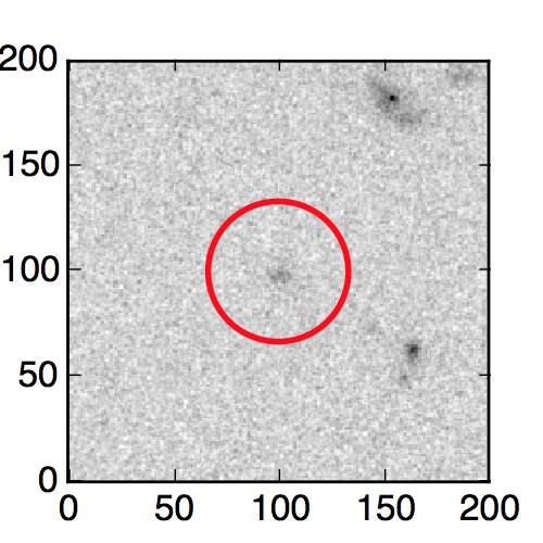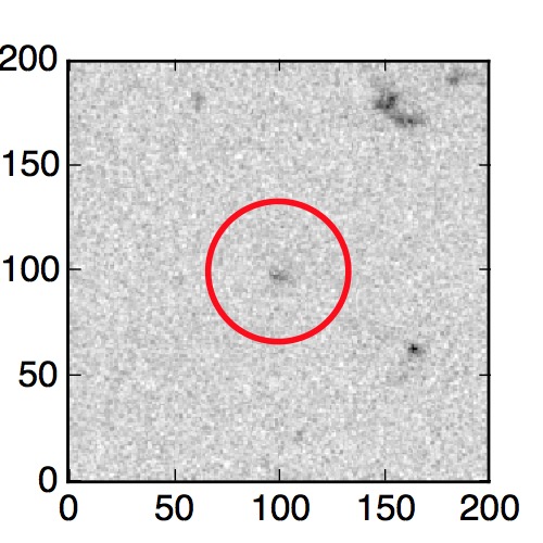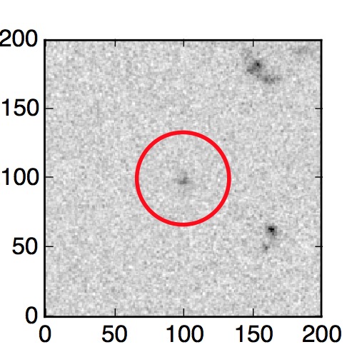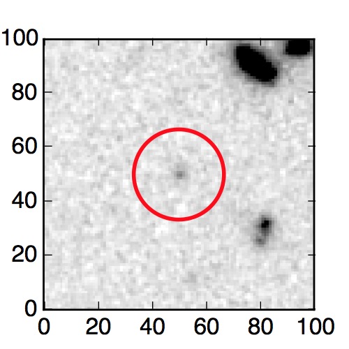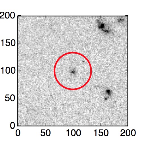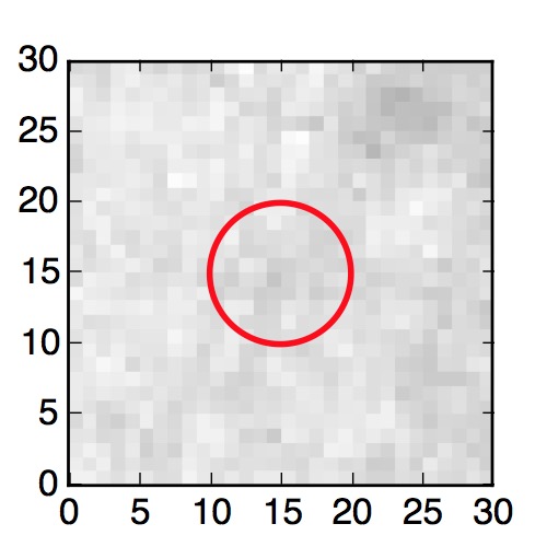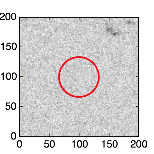 The red circle in the various panels is 1" in radius. The images are 6"x6".