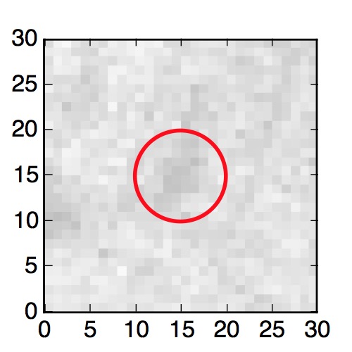 The red circle in the various panels is 1" in radius. The images are 6"x6".