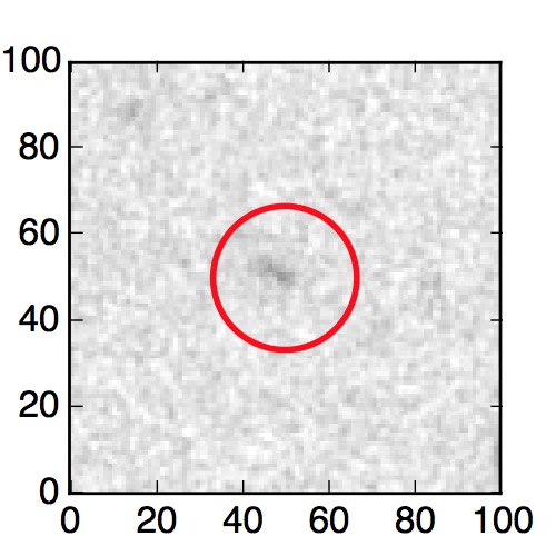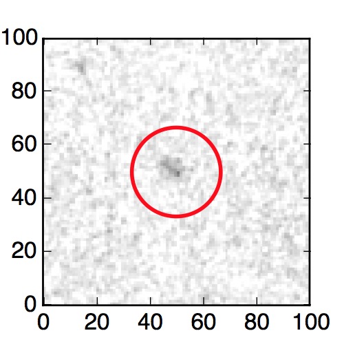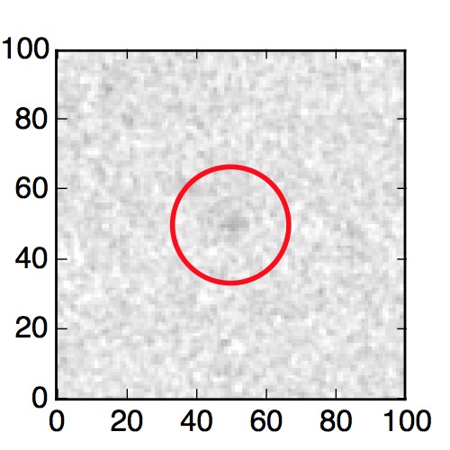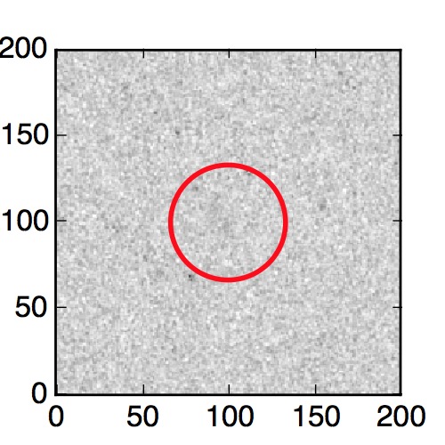 The red circle in the various panels is 1" in radius. The images are 6"x6".