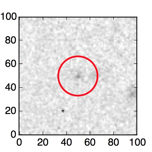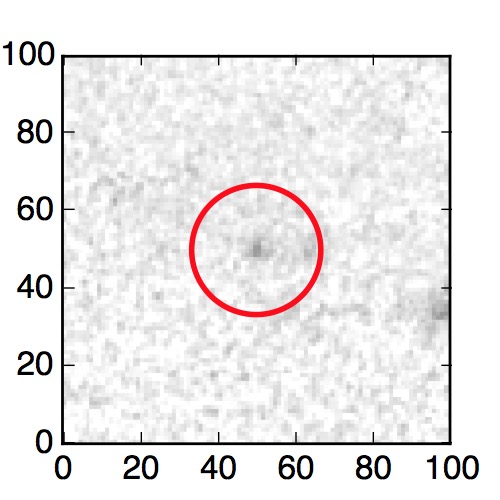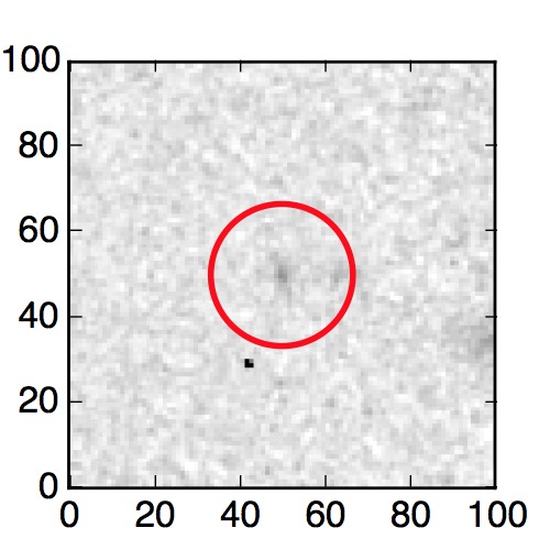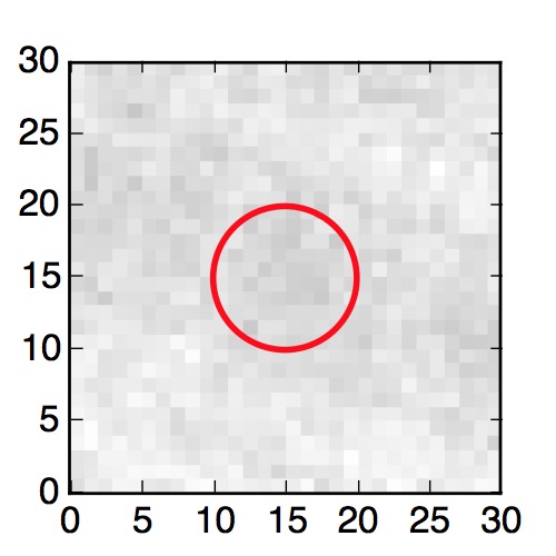 The red circle in the various panels is 1" in radius. The images are 6"x6".