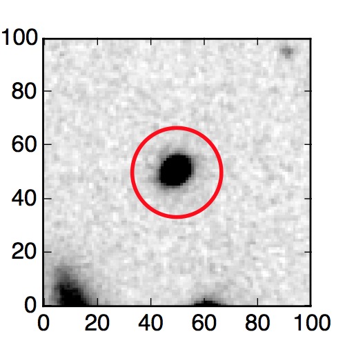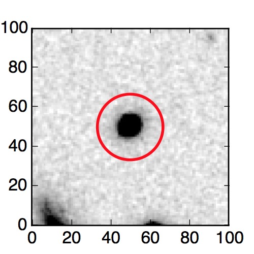 The red circle in the various panels is 1" in radius. The images are 6"x6".