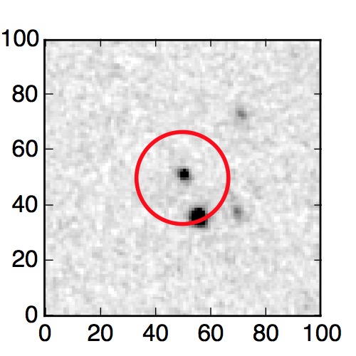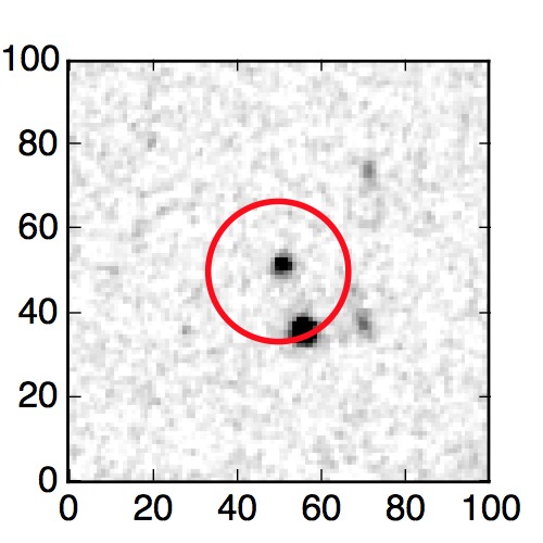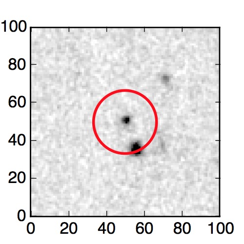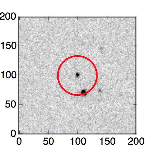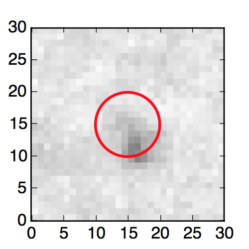 The red circle in the various panels is 1" in radius. The images are 6"x6".