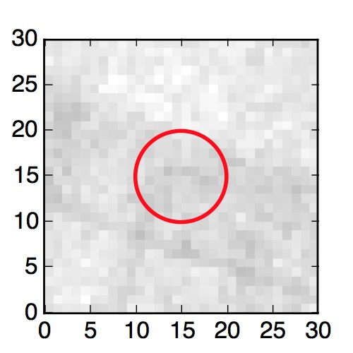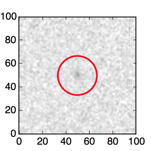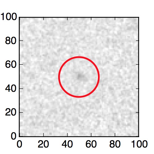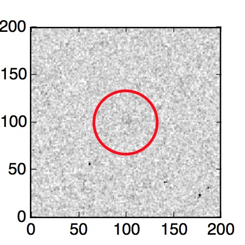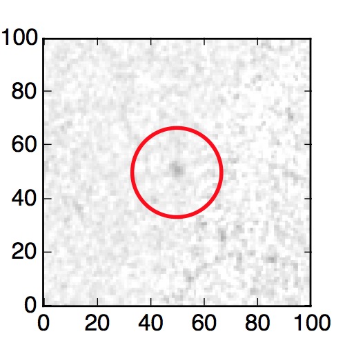 The red circle in the various panels is 1" in radius. The images are 6"x6".