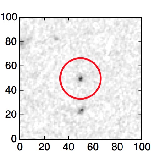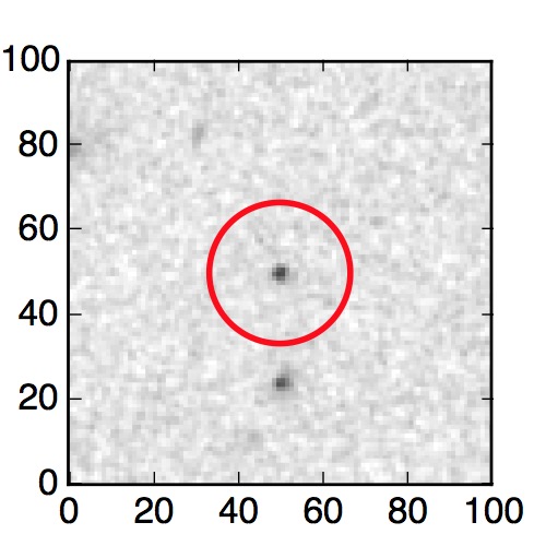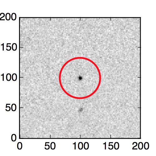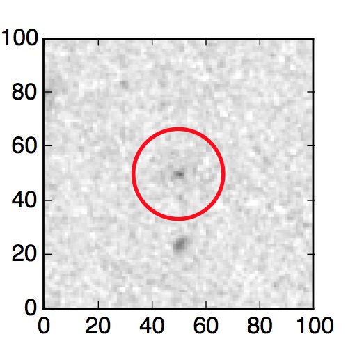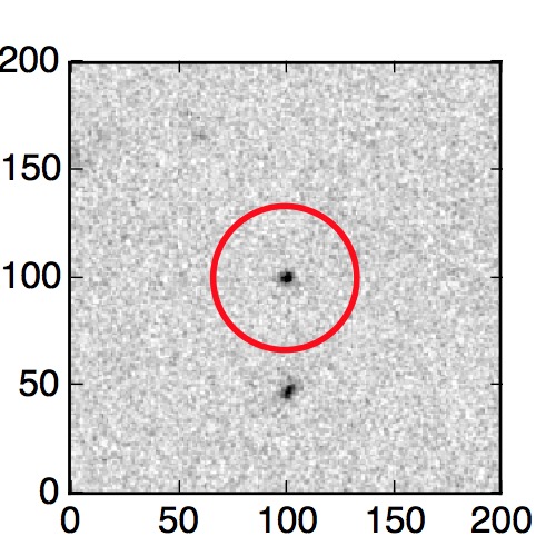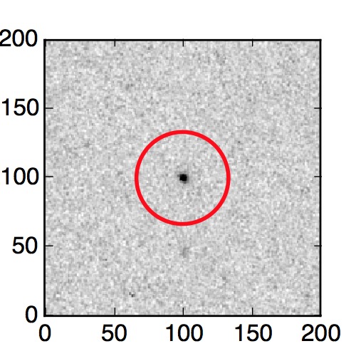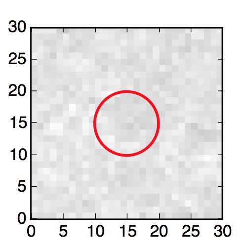 The red circle in the various panels is 1" in radius. The images are 6"x6".