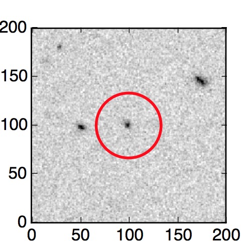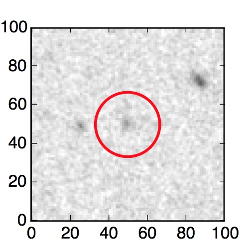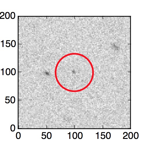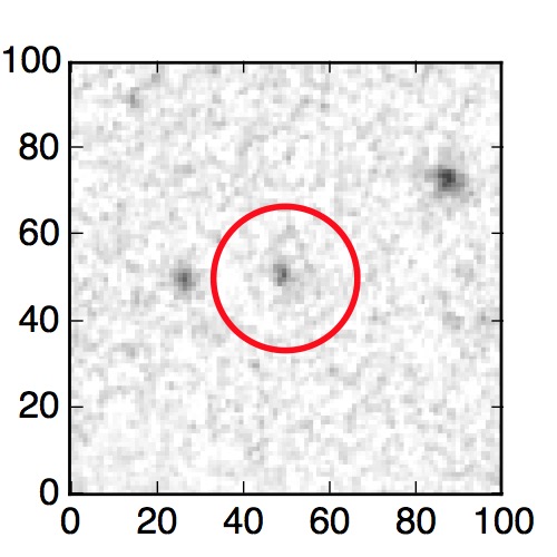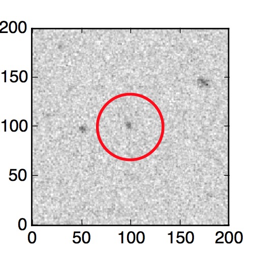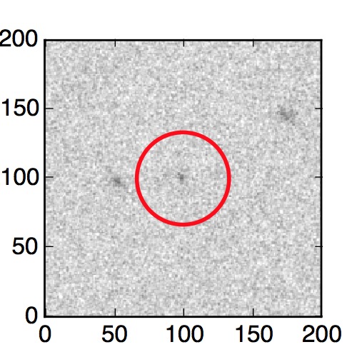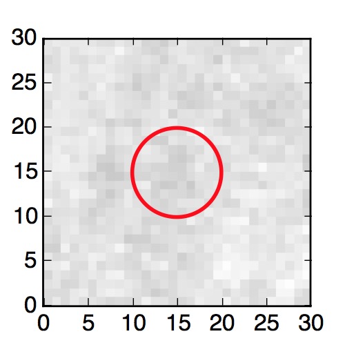 The red circle in the various panels is 1" in radius. The images are 6"x6".
