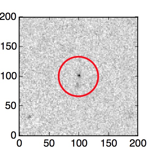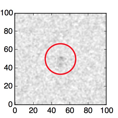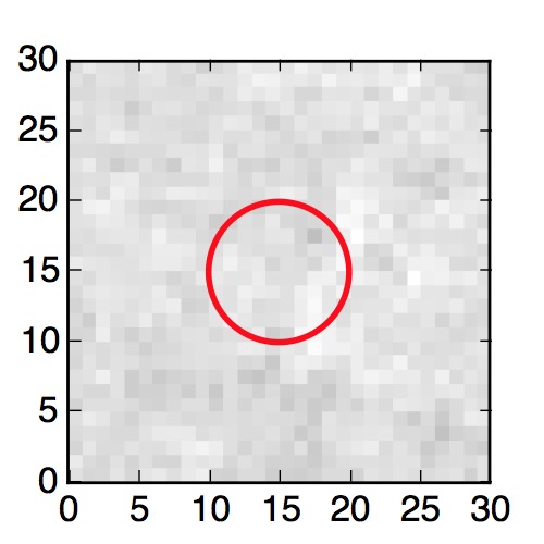 The red circle in the various panels is 1" in radius. The images are 6"x6".