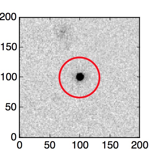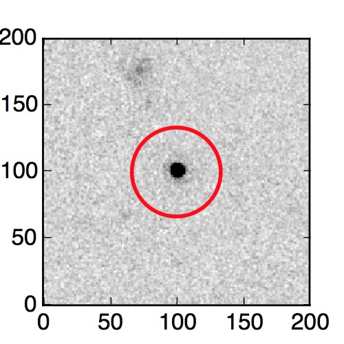 The red circle in the various panels is 1" in radius. The images are 6"x6".